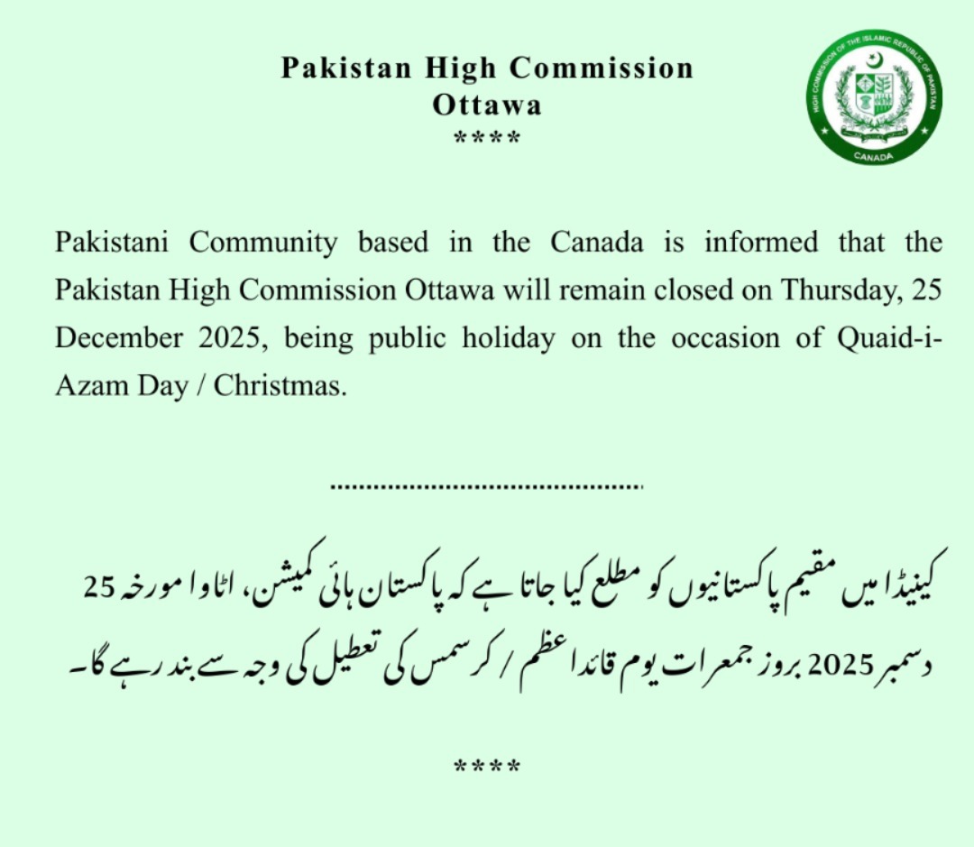 Announcement- Public Holiday on the occasion of Quaid-i-Azam Day/Christmas.