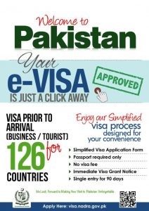 Die Regierung von Pakistan hat die Kategorie “Visum vor der Ankunft” (Visa Prior to Arrival, VPA) für Geschäftsreisende, Touristen und Sikh-Pilger eingeführt. Das VPA ist kostenlos verfügbar für Bürger aus 126 Ländern, einschließlich Inhaber deutscher Reisepässe.
