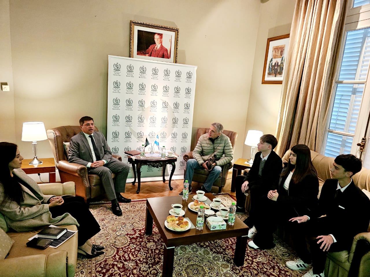 A student delegation belonging to Secundaria Privada Los Hornos School, La Plata ,Argentina visited the Embassy of Pakistan, as a part of their academic project , on 25th June 2025. The basic aim of the visit was to learn about the political, diplomatic, economic and trade dynamics of Pakistan.H.E Ambassador Hassan Afzal Khan briefed the students in detail, about the cultural, political & diplomatic aspects of Pakistan and also about the bilateral relations between the countries. TIC gave the students an economic and trade overview and apprised them about the bilateral trade between the countries.The visit ended with the vote of thanks by the professor and group leader of the students.