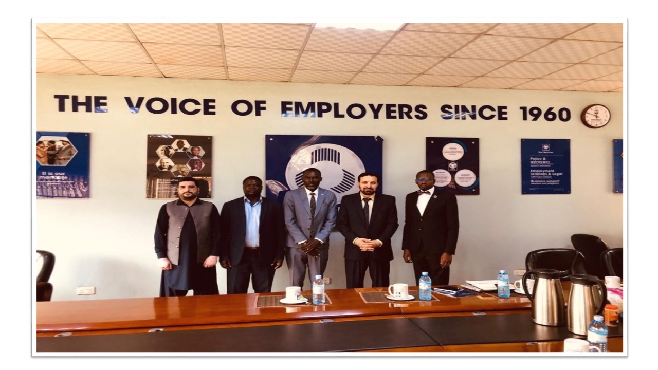 On July 30, 2024, the High Commissioner of Pakistan, H.E. Muhammad Hassan Wazir held a meeting with Mr. Opio Douglas, Chief Executive Officer, Federation of Uganda Employers. They discussed matters relating to trade activities and promoting employers/investors' welfare between Pakistan and Uganda.