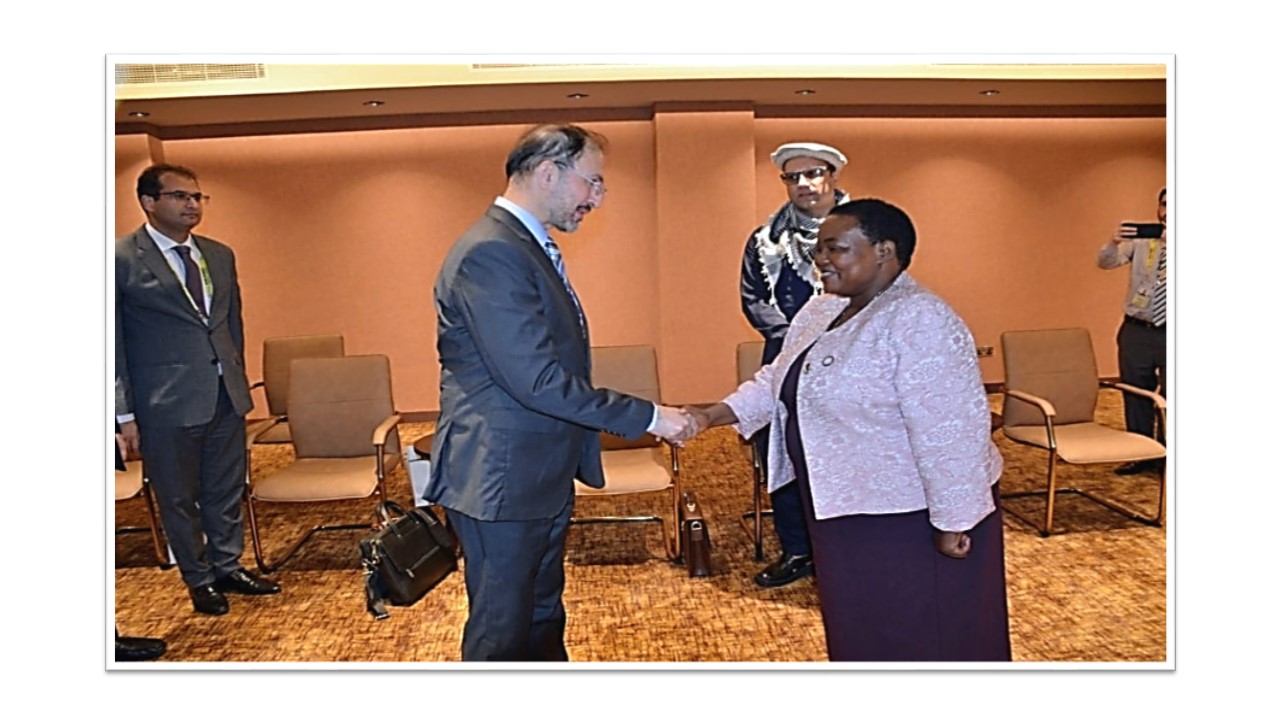 Pakistani Head of Delegation, Amb Syed Haider Shah, called on Her Excellency Robinah Nabbanja, Prime Minister of the Repulbic of Uganda at Munyonyo Resort on the margins of NAM Summit on January 20, 2024 in Kampala. They discussed matters of mutual interests between Pakistan and Uganda, including bilateral trade.