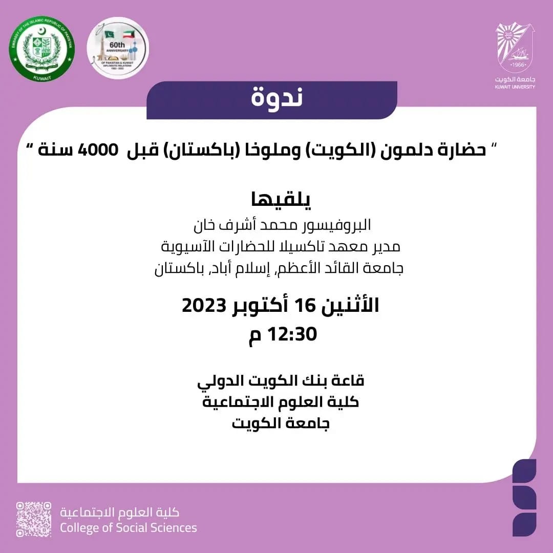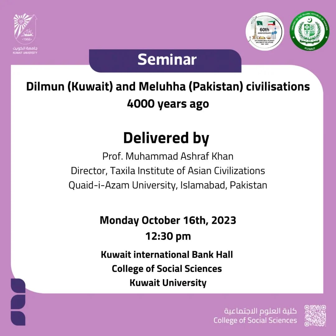 Special Seminar on linkages between ancient civilizations of Pakistan & Kuwait, organized by the Embassy in collaboration with Kuwait University to observe the International Day of Archeology