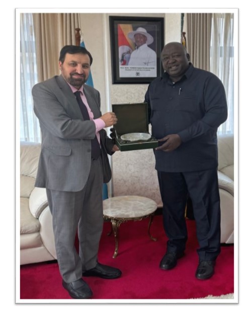 The High Commissioner of Pakistan, H.E. Muhammad Hassan Wazir called on Hon. Henry Oryem Okello, Minister of State for Foreign Affairs on April 04, 2024. They discussed bilateral relations and further cement diplomatic relations between Pakistan and Uganda, including at people to people level and international fora.