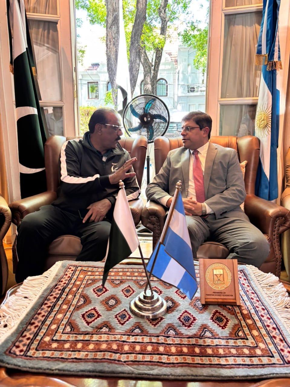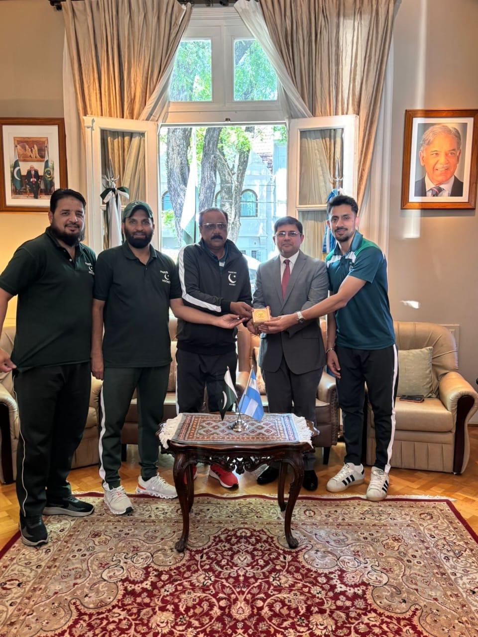 Visit of Pakistan National Hockey Team to Argentina Ambassador Hassan Afzal Khan was pleased to host the Pakistan National Hockey Team at the Embassy of Pakistan in Buenos Aires, Argentina. The Pakistan 🇵🇰 Hockey Team arrived in Argentina on 3 December 2025 to participate in the FIH Pro League. During the tour, Pakistan will play four matches against Argentina and the Netherlands. While welcoming the players, the Ambassador congratulated them on qualifying for the Pro League and extended his best wishes for their upcoming matches. He also assured the team of the Embassy’s full support and facilitation throughout their stay in Argentina. Captain of the Pakistan Hockey Team, Mr. Ammad Shakeel Butt, appreciated the warm welcome and gesture extended by Ambassador Hassan Afzal Khan.
