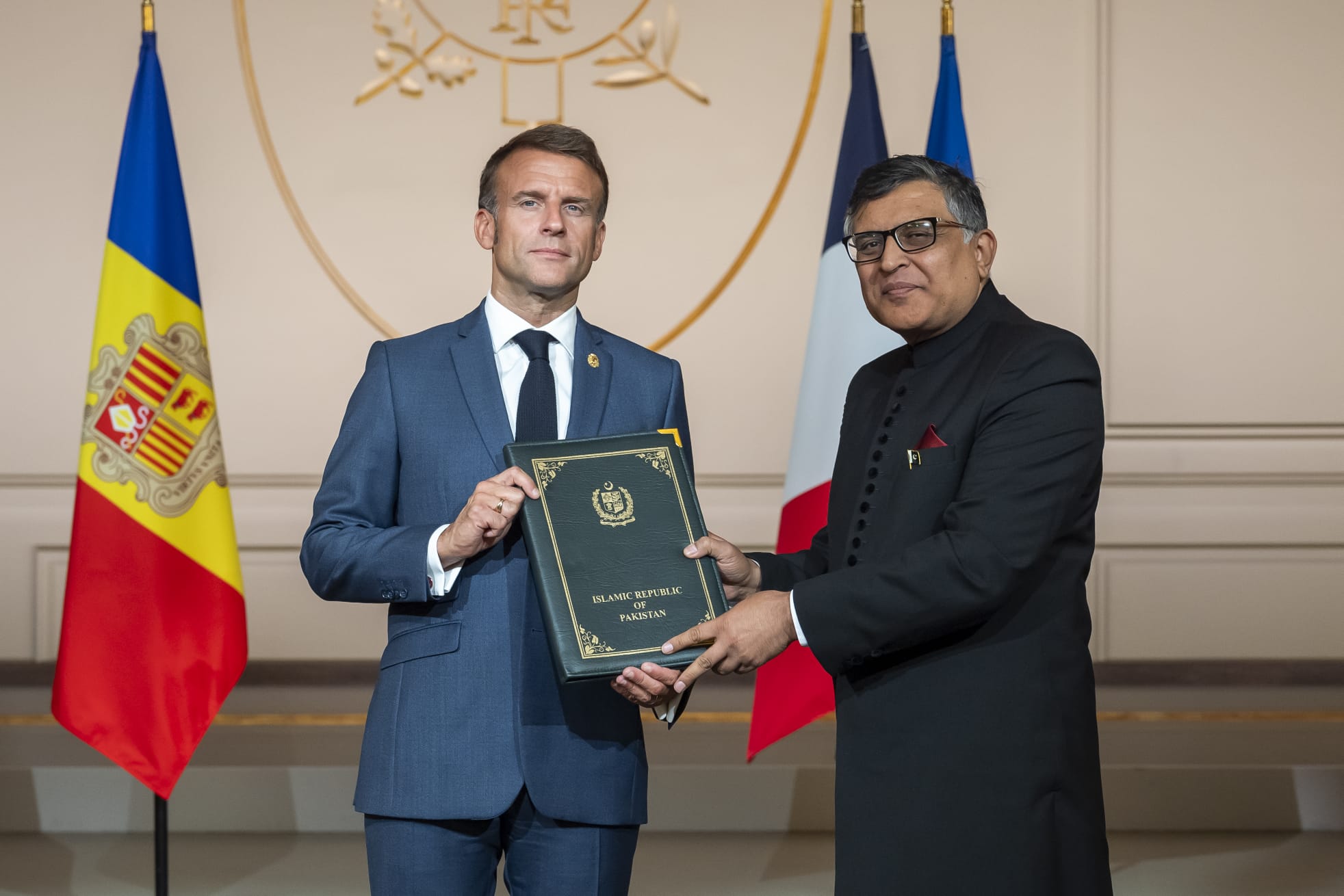 The Principality of Andorra has two Heads of States (Co-Princes ) which are President of France and Bishop of Urgell. Ambassadors accredited to Andorra are supposed to present credentials to both of them. Ambassador Dr. Zahoor Ahmed presented his credentials as Pakistan’s Ambassador concurrently accredited to Andorra at the Élysée Palace to President Macron on 17th September, 2024.