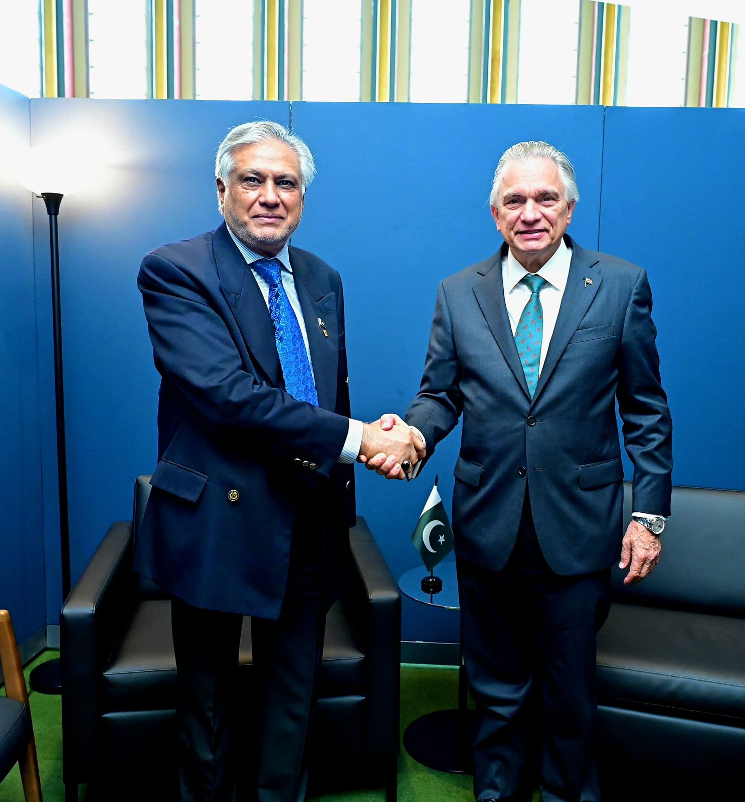 Deputy Prime Minister/Foreign Minister, Senator Mohammad Ishaq Dar, with the Foreign Minister of Costa Rica, Arnoldo Andre Tinoco, on the Sidelines of the 80th Session of the UN General Assembly in New York, USA on 26th September 2025