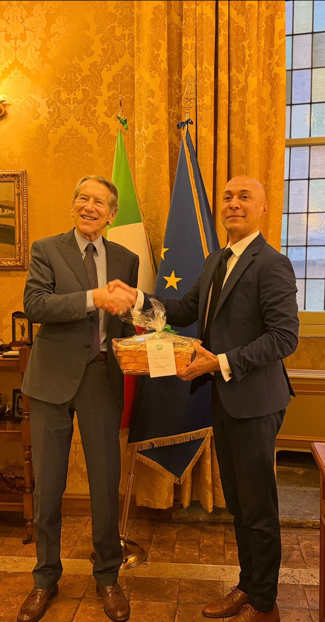 Ambassador of Pakistan in Rome, Mr. Ali Javed, has held a constructive meeting with Senator H.E. Hon. Giulio Terzi Di Sant’Agata at latter’s Chambers. Both dignitaries reviewed full spectrum of their strategic cooperation, mechanism and exchanges, regional & global dynamics. The Senator is former Foreign Minister and currently chairs Italian Senate’s Committee for EU Policy.
