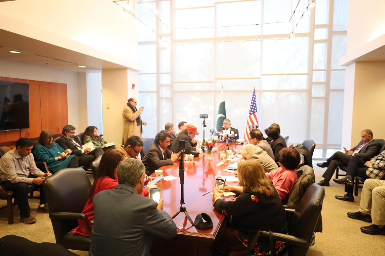 جمعہ کے روز سفارت خانہ پاکستان میں میڈیا نمائندگان سے خطاب کرتے ہوئے سفیر پاکستان نے 2025 میں پاک امریکہ تعلقات کے ضمن میں حاصل ہونے والی کامیابیوں کا سالانہ جائزہ پیش کرتے ہوئے قوم کو مبارکباد دیتے ہوئے کہا کہ گذشتہ سال کے واقعات نے دنیا بھر میں بسنے والو پاکستانیوں کا سر فخر سے بلند کیا اور ان میں پاکستانیت کو ازسر نو ترو تازہ کیا۔ انہوں نے کہا کہ 88 گھنٹوں میں پاکستانی قوم نے نہ صرف دو قومی نظریے کی بھرپور حفاظت کی بلکہ عالمی افق پر یہ ثابت کر دیا کہ ہم دنیا کے حساس ترین علاقے میں مضبوط ترین قوم اور علاقائی امن و سلامتی کے ضامن کا کردار ادا کرتے رہیں گے۔