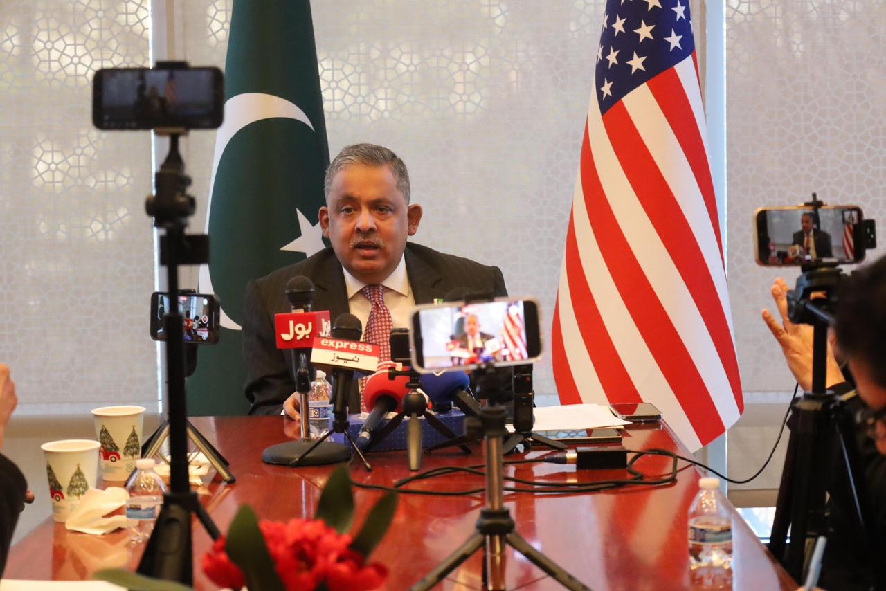 سفیر پاکستان نے کہا کہ موجودہ امریکی انتظامیہ کے عنان حکومت سنبھالتے ہی اعلیٰ قیادت کے مابین روابط کے نتیجے میں خوشگوار تاثر پیدا ہوا جس میں معاشی تعلقات پر مبنی طویل المدتی شراکت داری کے عزم کا اعادہ کیا گیا۔ اس ضمن میں سفیر پاکستان نے معدنیات، توانائی، آئی ٹی اور صحت تعلیم انسدادِ دہشت گردی سمیت مختلف شعبہ جات کا خصوصی طور پر ذکر کیا۔