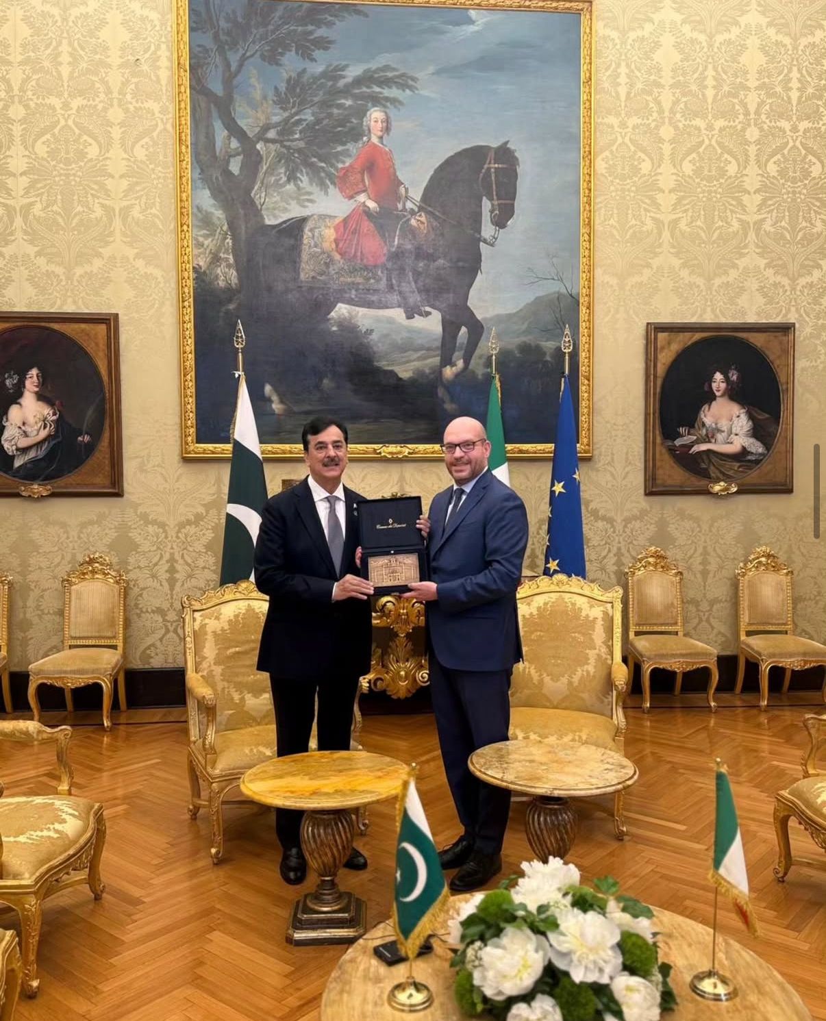 Chairman Senate of Pakistan Honble Syed Yousuf Raza Gillani held a constructive meeting with President of Italian Chamber of Deputies (Speaker Lower House), H.E. Mr. Lorenzo Fontana. The Chairman is on official visit representing Pakistan at inauguration ceremony of the new Pope.