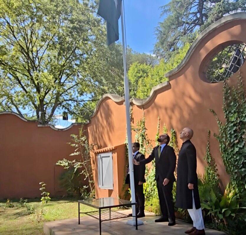 The Embassy hosted a landmark public event on its premises today in presence of Chaudhry Salik Hussain, Hon’able Minister OPHRD, who is on a bilateral visit to Italy. The proceedings commemorated Marka-e-Haq and Pakistan’s Defence Day, in addition to Town Hall interaction with the Pakistani community in Italy. The program was initiated with Flag Hoisting ceremony.