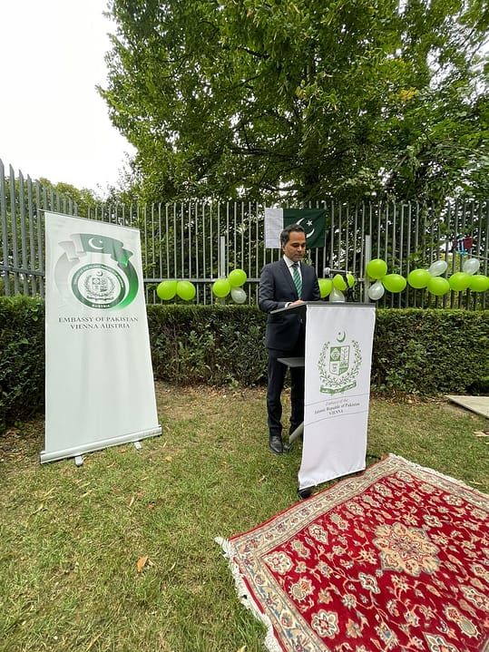 The Embassy of Pakistan in Vienna, today, organized a flag hoisting ceremony to celebrate the country’s 75th Independence Day.