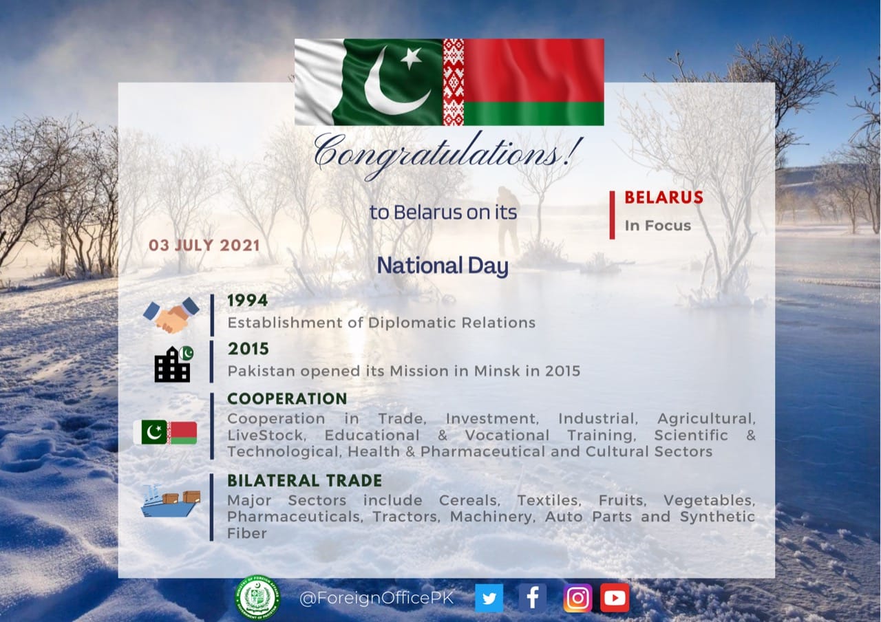 Happy Independence Day to the Government and people of the Republic of Belarus. 🇵🇰🤝🏻🇧🇾