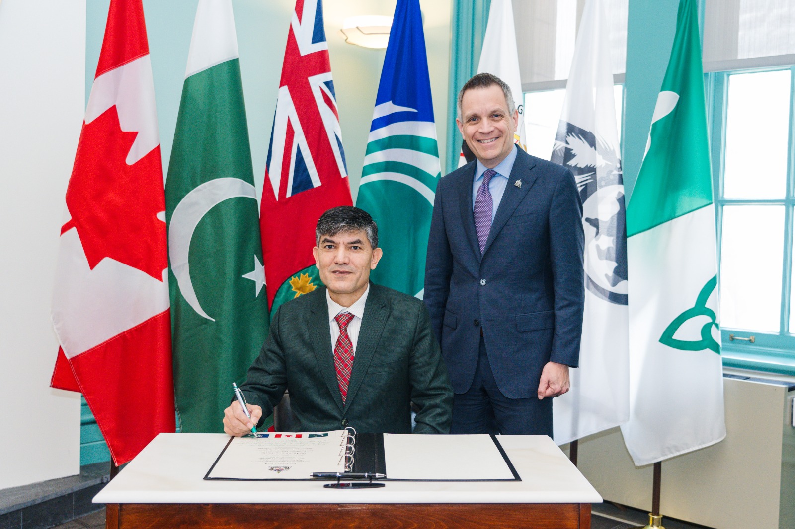 High Commissioner Muhammad Saleem held a cordial meeting with H.W. Mark Sutcliffe, Mayor of Ottawa, at City Hall today. During the meeting, the High Commissioner exchanged views on matters of mutual interest. Referring to a sizable number of the Pakistani Community residing in the National Capital Region, the High Commissioner appreciated the support extended by the City Hall and its local Municipalities and Community Centres to the residents.