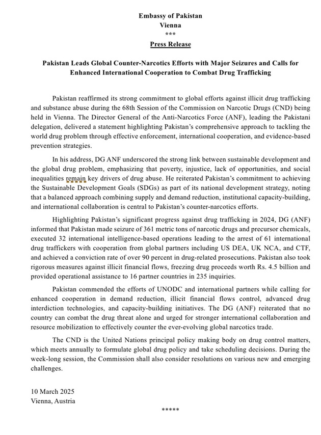Pakistan Leads Global Counter-Narcotics Efforts with Major Seizures and Call for Enhanced International Cooperation to Combat Drug Trafficking