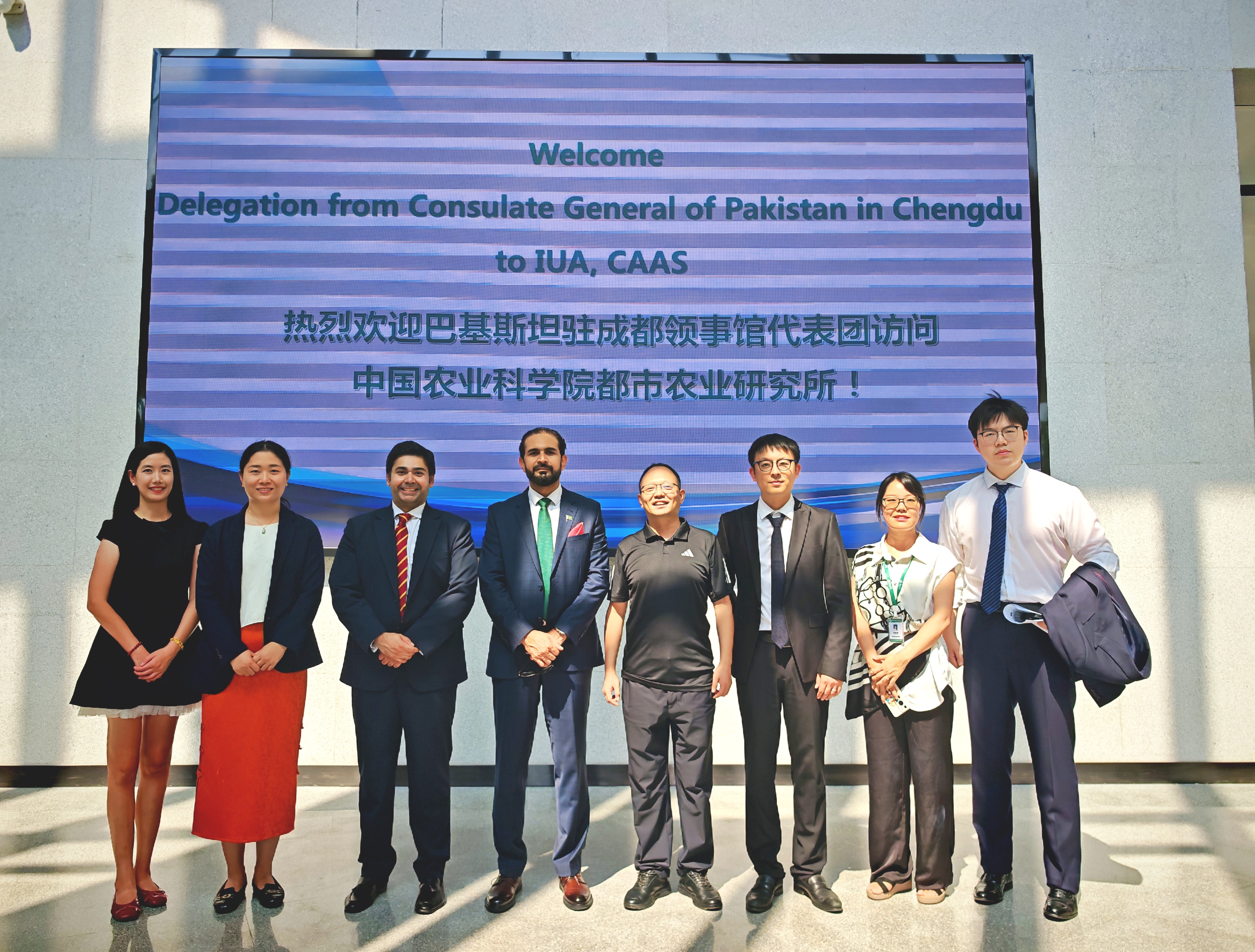 On 15th July 2025, Consul General of Pakistan in Chengdu, Mr. Tanvir A. Bhatti, made an official visit to the Institute of Urban Agriculture (IUA), and met with Deputy Director General Mr. Hu Yongsong, Deputy Director General Liu Shuang, and other members of the Institute. The Institute is one of the 34 research centers falling under the Chinese Academy of Agriculture Sciences (CAAS), and focuses on urban food supply. Around 7 students are already studied at the institute.