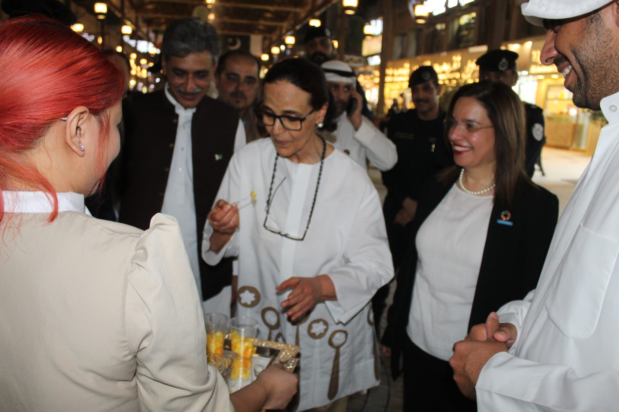 In his welcoming remarks, Ambassador Malik Muhammad Farooq conveyed his gratitude to His Highness Sheikh Nawaf Al Ahmed Al-Jaber Al-Sabah, the Amir of Kuwait, His Highness Sheikh Meshaal Al-Ahmed Al-Jaber Al-Sabah, the Crown Prince, the government and the people of Kuwiat for their support towards Pakistan. The Ambassador particularly expressed his profound gratitude to Her Excellency Sheikha Amthal Al-Ahmed Al-Jaber Al-Sabah for gracing the occasion and admiring the succulent Pakistani Mangoes. He also appreciatied the organisers of the event: the Kuwait Voluntary Work Center, the UN Habitat and Pakistani community members in making the event a resounding success. Head of UN Habitat Mission in Kuwait, Dr. Ameera Al-Hassan, in her remarks, appreciated the Mango Festival, particularly the idea of making the visitors experience the sweetness of Pakistani Mangoes in the historic marketplace of Souk Al-Mubarkya.